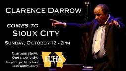 Free one-man play about the life and times of attorney Clarence Darrow, using his own words. This will be the last of five performances in the state of Iowa this year.